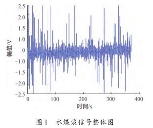 針對(duì)硅酸鈉流量計(jì)測(cè)量水煤漿時(shí)出現(xiàn)較大波動(dòng),甚至回零這一問(wèn)題,特去某煤化工企業(yè)甲醇分公司進(jìn)行現(xiàn)場(chǎng)數(shù)據(jù)采集。該公司所使用的對(duì)置式四噴嘴氣化有4個(gè)噴嘴,噴嘴管道口徑為125mm,管中水煤漿流量基本穩(wěn)定在19m³/h(流速約為0.48m/s)。每條噴嘴煤漿線(xiàn)上安裝了3臺(tái)硅酸鈉流量計(jì),每臺(tái)硅酸鈉流量計(jì)由傳感器和變送器兩部分組成。選擇其中1條水煤漿管線(xiàn)上的1臺(tái)硅酸鈉流量計(jì)進(jìn)行數(shù)據(jù)采集,因?yàn)樵撆_(tái)硅酸鈉流量計(jì)測(cè)量結(jié)果波動(dòng)大,甚至出現(xiàn)回零的現(xiàn)象。將課題組研制的基于DSP的電磁流量變送器的信號(hào)線(xiàn)和勵(lì)磁線(xiàn)接到該電磁流量傳感器的電極和勵(lì)磁線(xiàn)圈上,組合成完整的硅酸鈉流量計(jì),進(jìn)行水煤漿數(shù)據(jù)采集。使用的電磁流量變送器是以TI公司DSP芯片TMS320F28335為核心,采用高頻勵(lì)磁方案,其硬件主要包括勵(lì)磁控制系統(tǒng)和信號(hào)采集處理系統(tǒng),具體的模塊有勵(lì)磁驅(qū)動(dòng)模塊、信號(hào)調(diào)理采集模塊、信號(hào)處理控制模塊、人機(jī)接口模塊、通信模塊及電源管理模塊。信號(hào)調(diào)理采集模塊中的調(diào)理電路對(duì)一次儀表輸出的信號(hào)進(jìn)行放大和濾波,截止頻率是2kHz,放大倍數(shù)約為230倍。通過(guò)NI公司USB-6216型號(hào)的數(shù)據(jù)采集卡進(jìn)行數(shù)據(jù)采集,把調(diào)理電路的輸出端連接到數(shù)據(jù)采集卡的一個(gè)差分輸入端,并設(shè)置數(shù)據(jù)采集卡工作在差分的測(cè)量模式,設(shè)置采集卡的采樣頻率為10kHz。采集多組水煤漿信號(hào)數(shù)據(jù),每組數(shù)據(jù)的時(shí)間長(zhǎng)度為5min。