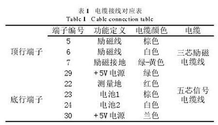 ---將用于檢測傳輸是否正確的三芯勵磁電纜線和五芯信號電纜線按如下表格1連接:切記轉(zhuǎn)換器和傳感器上的電纜線連接一定要一一對應(yīng)。