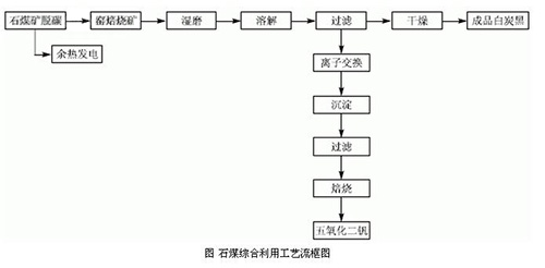 本項(xiàng)目為石煤綜合利用的項(xiàng)目。現(xiàn)有提釩工藝產(chǎn)生大量廢渣。其主要成分為二氧化硅,但其中夾帶有大量的釩資源,釩資源利用率低,同時(shí),該廢渣中堿含量較高,如將廢渣隨意堆放,易造成環(huán)境污染。本項(xiàng)目*大特點(diǎn)在于利用現(xiàn)有提釩工藝中的提釩二次渣作為制備沉淀法白炭黑的主要原料,將廢渣中的硅資源得到充分利用。為企業(yè)創(chuàng)造了新的經(jīng)濟(jì)增長(zhǎng)點(diǎn),同時(shí),解決了現(xiàn)有提釩生產(chǎn)中造成的釩資源浪費(fèi)和環(huán)境污染問(wèn)題,此外,該項(xiàng)目利用現(xiàn)有提釩生產(chǎn)線脫碳工序中產(chǎn)生的余熱作為加熱熱源,取代了傳統(tǒng)工藝以煙煤為主要燃料的方法,即對(duì)生產(chǎn)中產(chǎn)生的余熱得到了有效合理的利用,又進(jìn)一步降低了產(chǎn)生的燃料成本,達(dá)到了節(jié)能減排,資源綜合利用的目的,工藝流程框圖如下。