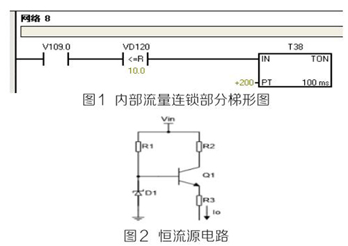 (2)PLC及模塊。PLC及模塊是自動化控制系統(tǒng)主要設(shè)備,且PLC及模塊屬于高集成高精密電子設(shè)備,保持室內(nèi)整潔舒適,可以提高自動化系統(tǒng)運行穩(wěn)定性。PLC及模塊硬件運行可靠,內(nèi)部控制程序是其控制核心軟件,如PLC硬件出現(xiàn)故障或損壞一般直接更換,但原內(nèi)部控制軟件無法上傳,整個控制系統(tǒng)成失控狀態(tài)。所以其內(nèi)部控制程序在調(diào)試驗收合格后應(yīng)及時備份并做好標(biāo)記,為以后修復(fù)PLC故障提供保障。PLC系統(tǒng)的維護技術(shù)人員需掌握一定基礎(chǔ)PLC控制邏輯原理,對準(zhǔn)確判斷PLC故障點有很大的幫助。例如選礦廠水泵房S7-200系列PLC自動抽水系統(tǒng)出現(xiàn)如下故障 :觸摸屏能控制變頻器啟動水泵抽水,但在短時間內(nèi)會自動停泵,導(dǎo)致無法正常抽水。通過故障現(xiàn)象可初步判斷PLC及模塊硬件設(shè)備正常,主要由于某個變量有問題導(dǎo)致連鎖停機。打開備份PLC控制梯形圖程序進行相關(guān)分析,原來是水流量計瞬時流量數(shù)值做了連鎖,其在一定時間內(nèi)瞬時流量不大于10m 3 /h時,自動停泵,電磁流量模擬量輸出電流值僅為4ma且無變化,確定水流量計有故障??膳R時應(yīng)急維修,模擬量模塊輸入模擬電流值10ma~20ma之間一固定數(shù)值即可恢復(fù)正常運行。制作簡單恒流源電路代替水流量計輸出的模擬電流量,實現(xiàn)解決水泵無法正常運行的故障。