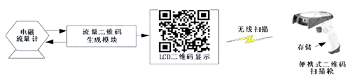 二維碼生成模塊定時(shí)向硝酸鈉流量計(jì)發(fā)送采集指令,后者收到指令后發(fā)送流量數(shù)據(jù)。