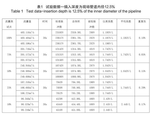 插入式壓縮空氣流量計(jì)插入深度為現(xiàn)場(chǎng)管道內(nèi)徑的 12.5%時(shí),試驗(yàn)數(shù)據(jù)如下(以 DN200 為例):