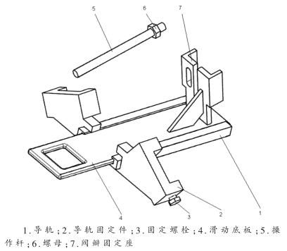 (1)閥瓣拆裝及接觸試驗?zāi)K的特點閥瓣拆裝及接觸試驗?zāi)K主要由導(dǎo)軌、導(dǎo)軌固定件、滑動底板、操作桿、固定螺栓、閥瓣固定座等零部件組成。