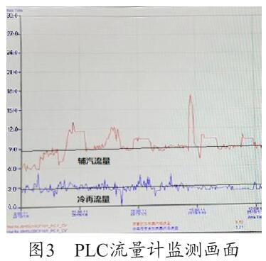 通過圖3可以看出,PLC 上輔汽測量用的脫硫煙氣流量計的量程設置為30t/h,現(xiàn)場設備量程實際為5t/h,兩者嚴重不符,因此測量值8.286t/h 為錯誤值,需要對程序進行修改。