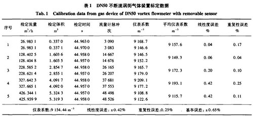 在實際標(biāo)定過程中,相同口徑的不斷流渦街與普通管道煤氣流量計在可測流量范圍、基本誤差、重復(fù)性等參數(shù)上基本一致,達(dá)到了設(shè)計和使用精度的要求。