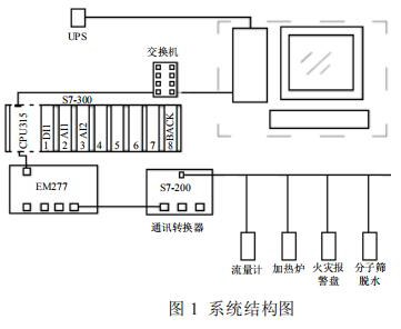 集氣站是收集氣井所生產(chǎn)天然氣的站場,在集氣站內(nèi)對天然氣進行節(jié)流降壓、加熱、調(diào)壓計量等各種工藝預(yù)處理,設(shè)備眾多且分散。為方便進行檢測和操作,必須進行統(tǒng)一的數(shù)據(jù)采集,在監(jiān)控臺進行數(shù)據(jù)的管理。集氣站設(shè)備主要包括加熱爐、衛(wèi)生型渦輪流量計、分子篩、火災(zāi)報警盤,以及供電設(shè)備 UPS 等,這些不同廠家的設(shè)備基本都支持Modbus 協(xié)議,通過 Modbus 通訊可以將這些數(shù)據(jù)采集。為了有效降低成本,設(shè)計了如圖 1 所示的系統(tǒng)。系統(tǒng)采用西門子 S7-300 控制器,通過以太網(wǎng)連接上位機監(jiān)控軟件,再通過 MP277 連接S7-200 的方式。S7-200 控制器自帶 RS485 接口,能夠進行 Modbus 通訊,采集現(xiàn)場各種設(shè)備數(shù)據(jù)。*后通過以太網(wǎng)通訊將設(shè)備數(shù)據(jù)上傳至監(jiān)控軟件,方便操作人員進行監(jiān)控,該方案簡單有效,能夠?qū)崿F(xiàn)集氣站內(nèi)設(shè)備的狀態(tài)監(jiān)控,數(shù)據(jù)處理,有效的進行天然氣的生產(chǎn)工作。