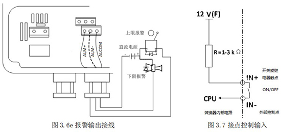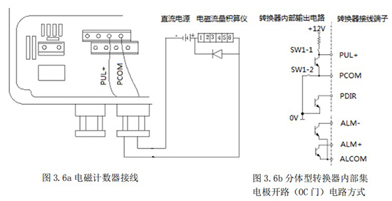 頻率(脈沖)、上下限報(bào)警、流向標(biāo)示等輸出均為集電極開路的電平輸出信號。