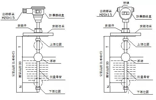 頂裝式浮球液位計是一種工業(yè)生產(chǎn)中普遍在使用的液位測量儀表,其安裝方便靈活,具有良好的適應性,法蘭式和支架式安裝都可進行,可適應不同的工況條件。浮球液位計是以磁浮球為測量元件,通過磁耦合作用,致使傳感器內(nèi)電阻產(chǎn)生線性變化,再通過智能轉換器將電阻變化轉換成4~20mA標準電流信號傳輸,特殊訂制的型號亦可以疊加HART協(xié)議的信號,*終能液晶方式顯示。據(jù)變送器與顯示器的不同型號,可以現(xiàn)場顯示液位的百分比、4~20mA電流及液位值,此遠傳信號可以遠傳供給控制室,以實現(xiàn)液位的自動檢測、控制和記錄。頂裝式浮球液位計適用于石油、化工、電力、輕工及醫(yī)藥等行業(yè)污水處理及各類常壓和承壓容器內(nèi)介質液位的測量,是測量各類貯罐、地下貯槽的*為理想的液位計產(chǎn)品。