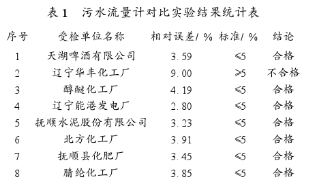 撫順市環(huán)保局在重點污染源單位中安裝了44臺化工污水流量計選型。其中,運轉(zhuǎn)的有39臺,運行比較正常的有14臺,通過對其中8臺所做對比實驗結(jié)果表明合格的有7臺,合格率為87.5%。
