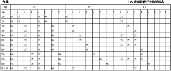 (4)標況流量計算公式,單位 t/h:四、AMPKP09A01 放大板波段開關調整參照表五、AMPSW10A01 放大板波段開關調整參照表RG=1-F 調放大器增益,由 1 至 F 依次增大(常用 4-8);RS=1-F 調觸發(fā)靈敏度,由 1 至 F 依次提高(常用 4-8)不同口徑和介質開關選擇參見附表。并根據(jù)實際信號先調整 K2 和 K3 擴展頻帶,必要時調整 K1 電荷放大器增益以上表值僅供參考,實際使用中因液體粘度和氣體密度不同應在此值附近調整,頻率低時可將 K3 向大口徑方向調一至三檔。頻率高時可將 K2 向小口徑方向調一至三檔。訂貨須知及選型樣譜一.尊敬的用戶,當您要選用本公司產(chǎn)品時,請仔細閱讀選型樣本,并做好以下工作:1.認真核對被測介質的工況條件:溫度、壓力、管徑等工藝參數(shù)。2.認真核對被測介質的使用流量范圍,特別是*小流量值以*終確定使用儀表的口徑及配管參數(shù)。3.確定儀表的安裝地點,保證直管段,并為儀表的安裝維護創(chuàng)造好的環(huán)境條件。4.填好訂貨咨詢單,見附表三二.渦街流量儀表選型表(符合 JB/T9294-1999 標準)1.傳感器選型表上一篇:污水流量計的種類